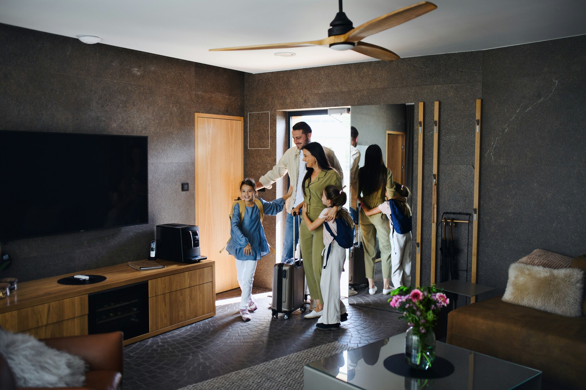 Unsere Zimmer und Suiten sind Rückzugsorte. Reduziert im Design, geprägt von natürlichen Materialien und klaren Linien, bieten sie Raum für Ruhe und Erholung. Große Fenster öffnen den Blick auf die Dolomiten und holen die umliegende Natur ganz selbstverständlich ins Innere. Jede Kategorie ist individuell gestaltet – mit dem gemeinsamen Anspruch, Komfort und Ruhe in Einklang zu bringen.